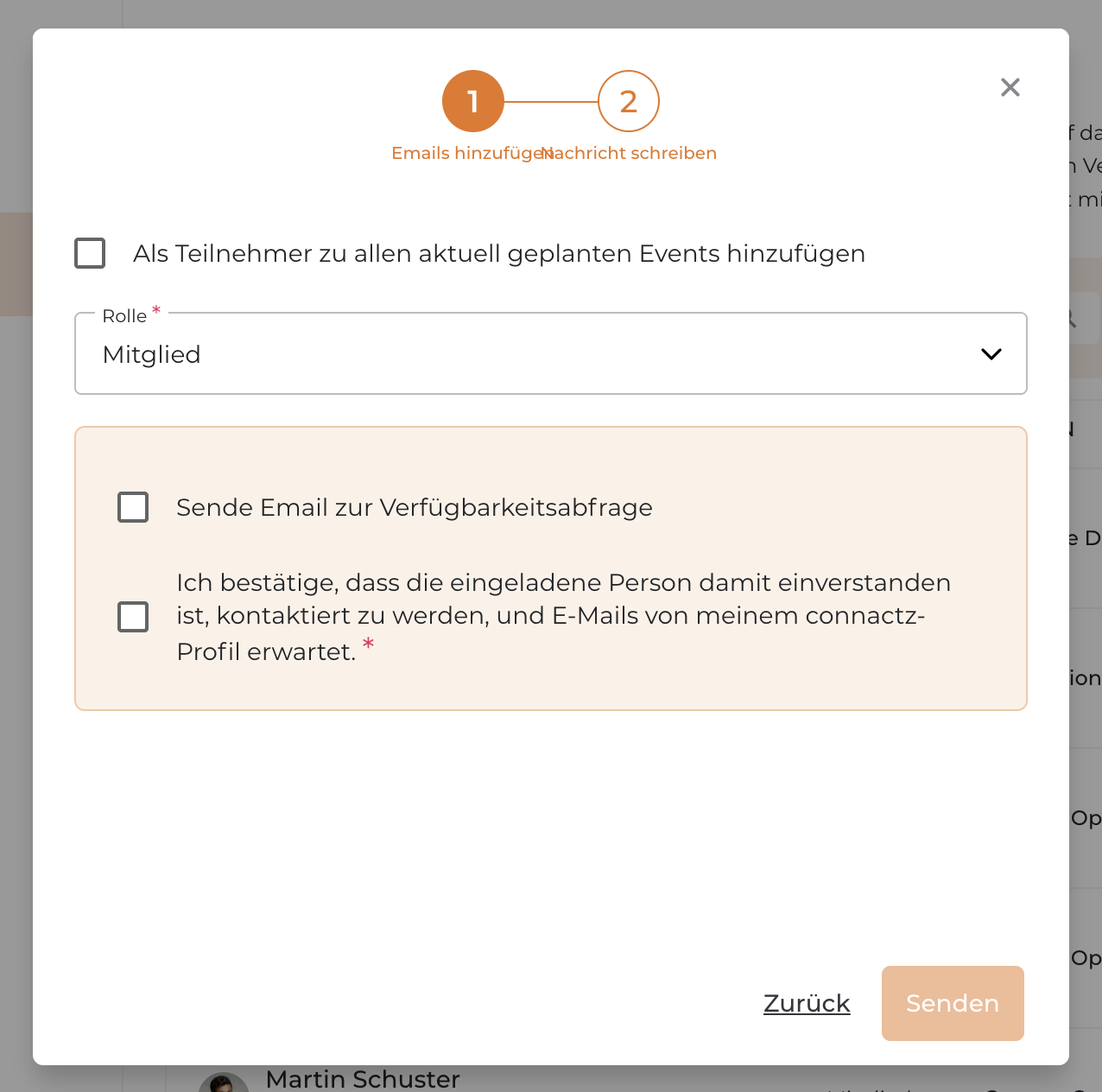 Ergebnis: Die Person wird in deiner Team-Liste angelegt, erhält aber keine E-Mail.